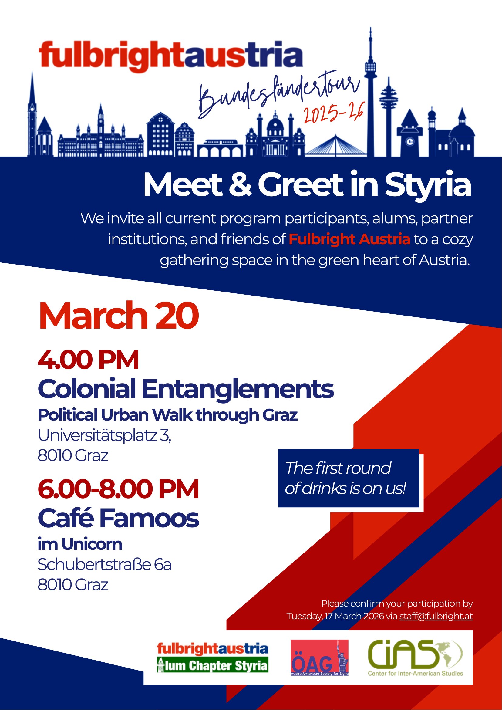 Further Information: https://www.fulbright.at/events/details/bundeslaendertour-2025-26-meet-greet-in-styria